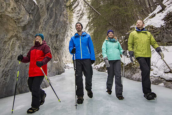 This Icewalk is considered easy to moderate, with a few small inclines. Using special hiking crampons and hiking poles for extra stability, you’ll walk directly on the icy surface of the creek bed floor.